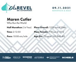 | Finish | 13.1 | 2:12:55 | 10:08/miles | 3.1 | 31:16 | 10:04/miles | 1220 | 710 F | 72 F45-49 |