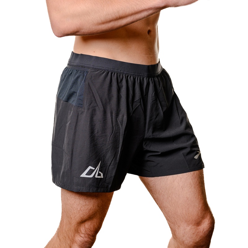 Black Brooks shorts with a white REVEL logo. Men's Shorts are a lightweight running short. Women's Shorts are a black compression short.