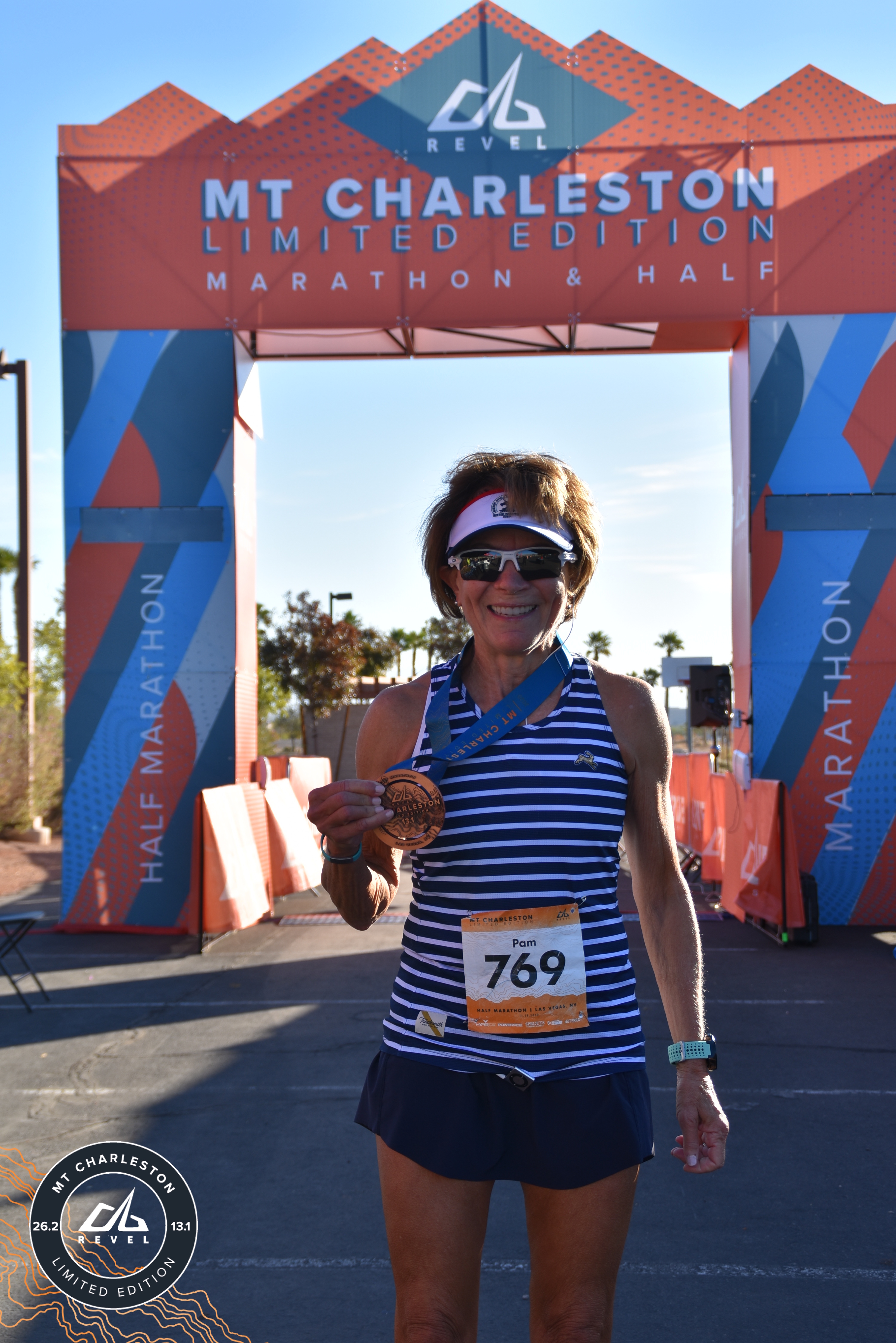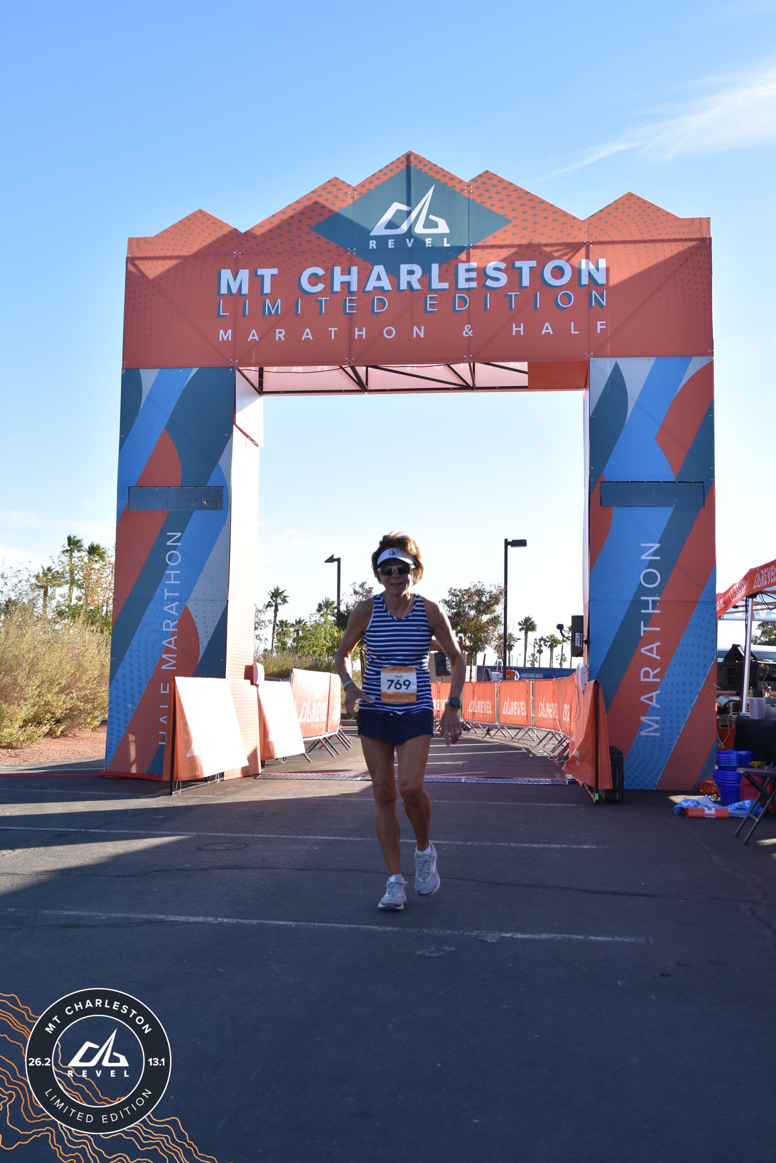 | Finish | 13.1 | 1:56:22 | 8:52/miles | 6.55 | 58:01 | 8:51/miles | 23 | 14 F | 1 F65-69 |