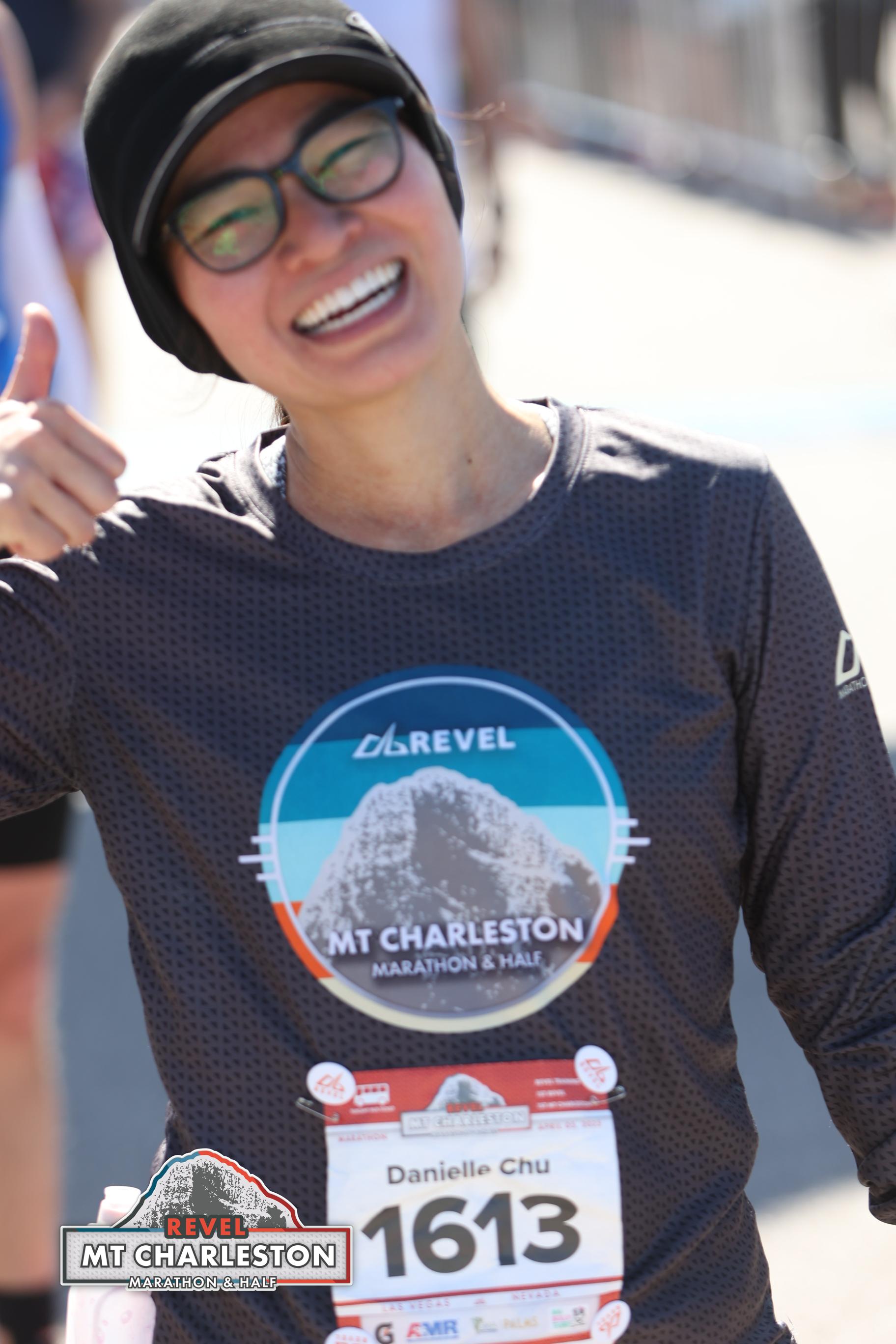 Date: April 5, 2025 Participant: Danielle Chu #1613 Race: 2025 REVEL Mt Charleston Marathon Distance: 26.2 miles Weather: Chilly start. Heavy winds (tail/cross wind). Sunny at the finish.