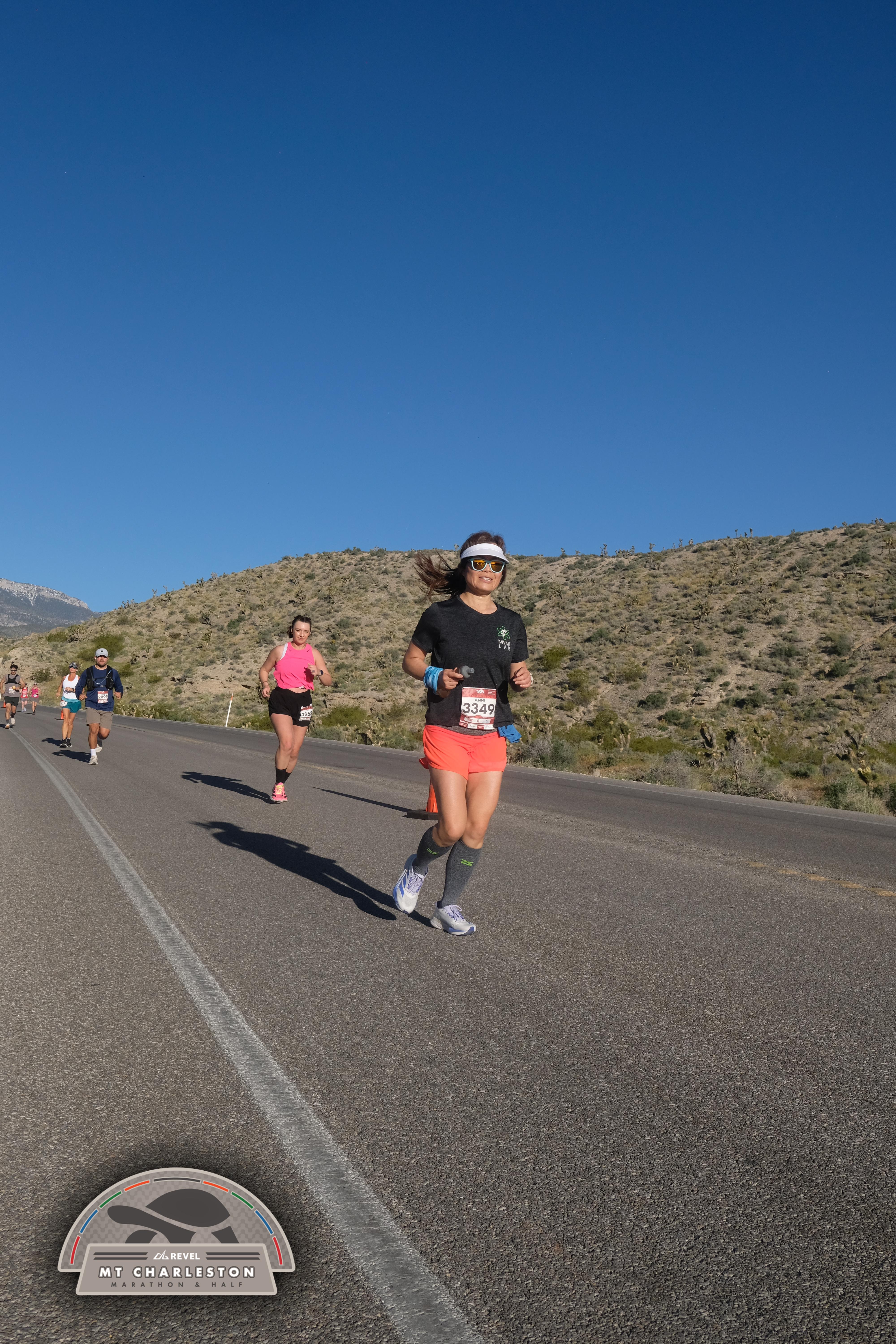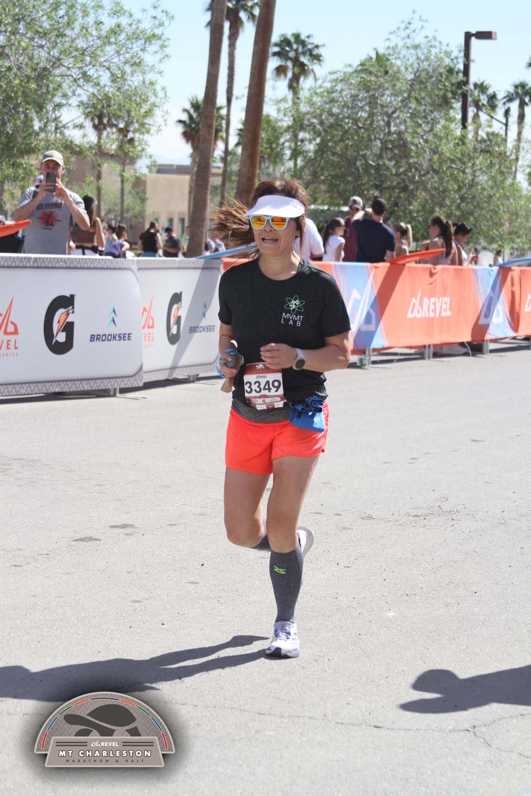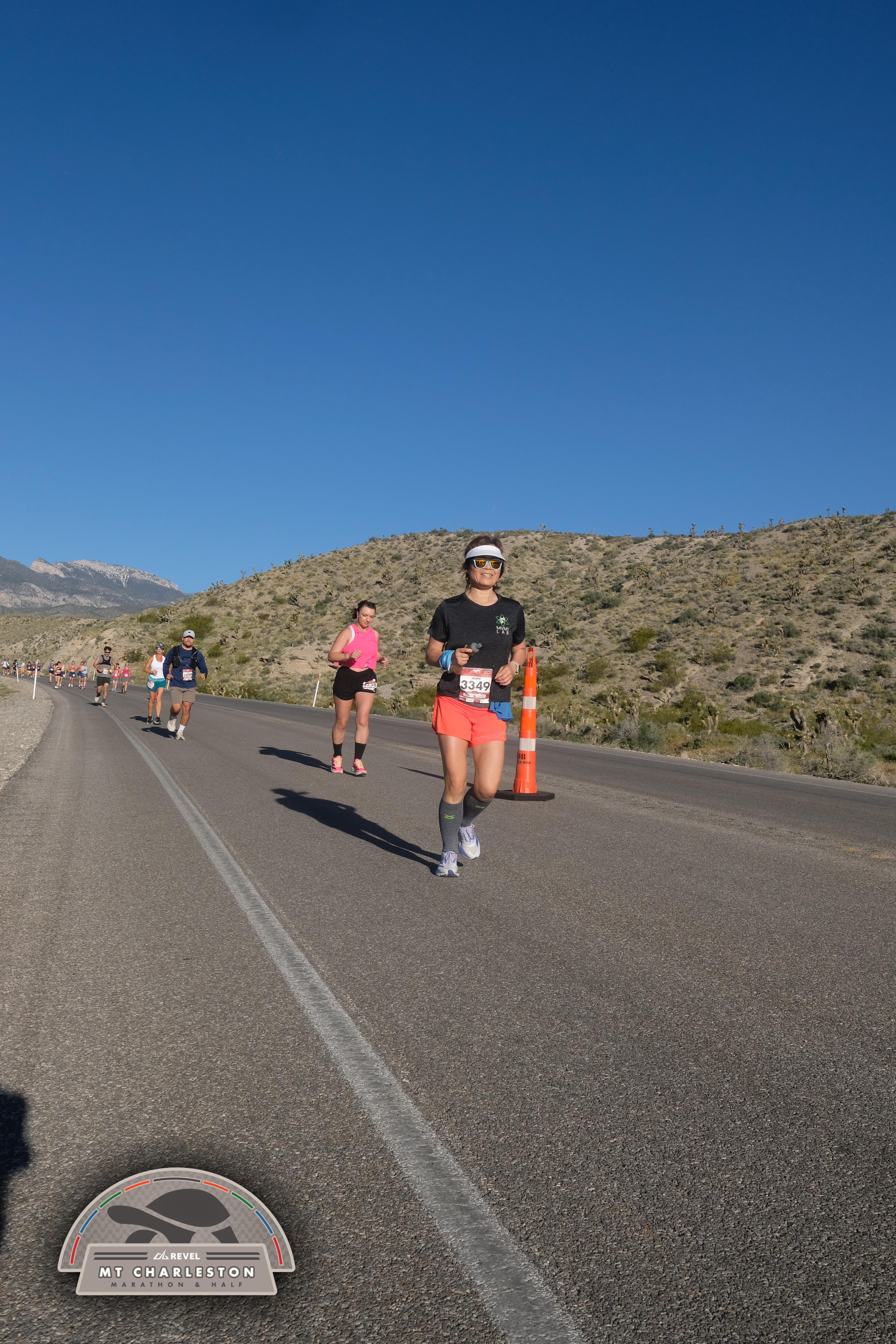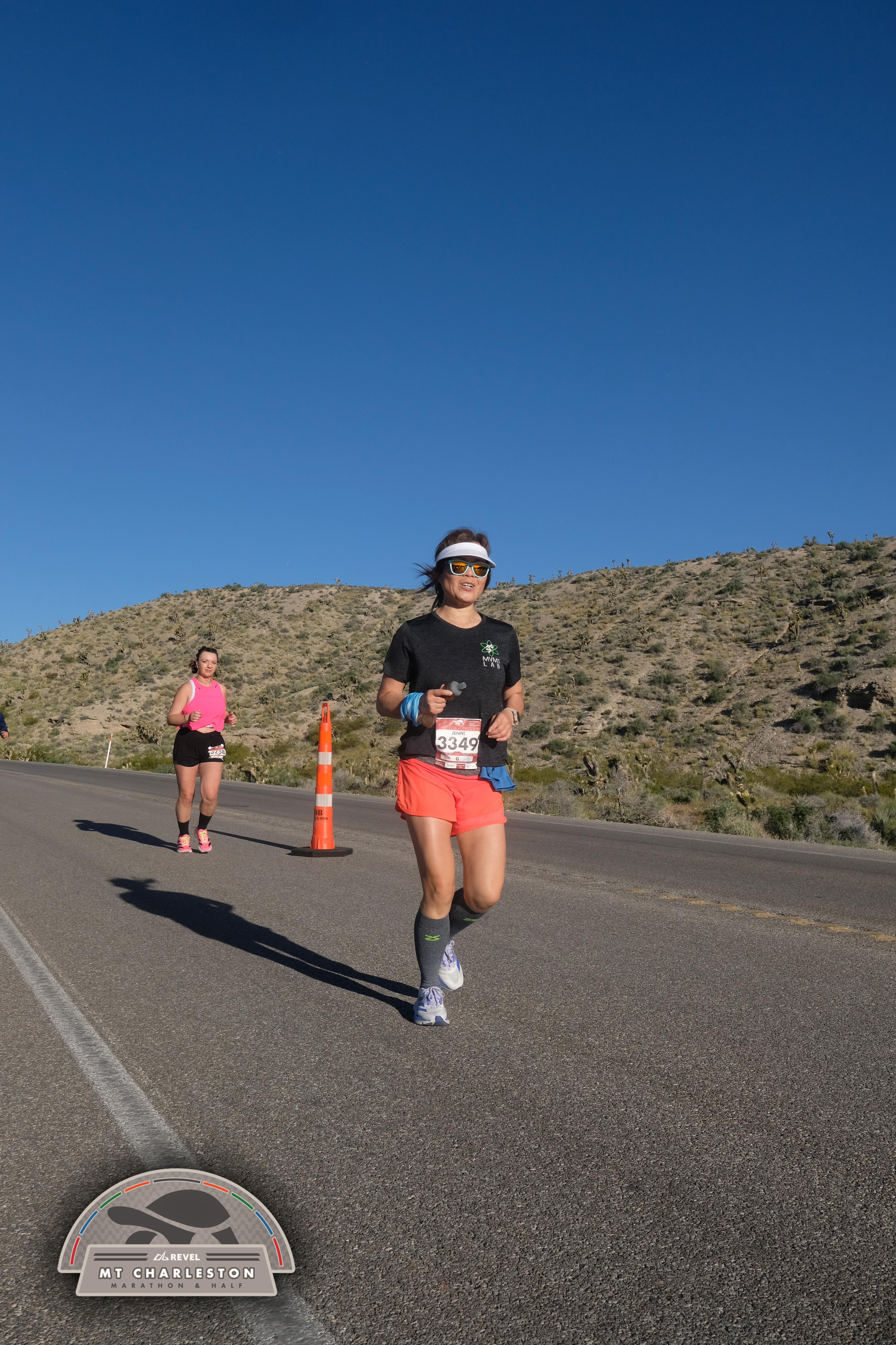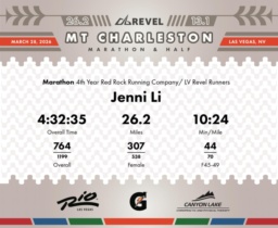 Date: March 28, 2026 Participant: Jenni Li #3349 Race: 2026 REVEL Mt Charleston Marathon Distance: 26.2 miles Weather: Unseasonably warm. Nice running temperatures at the start.