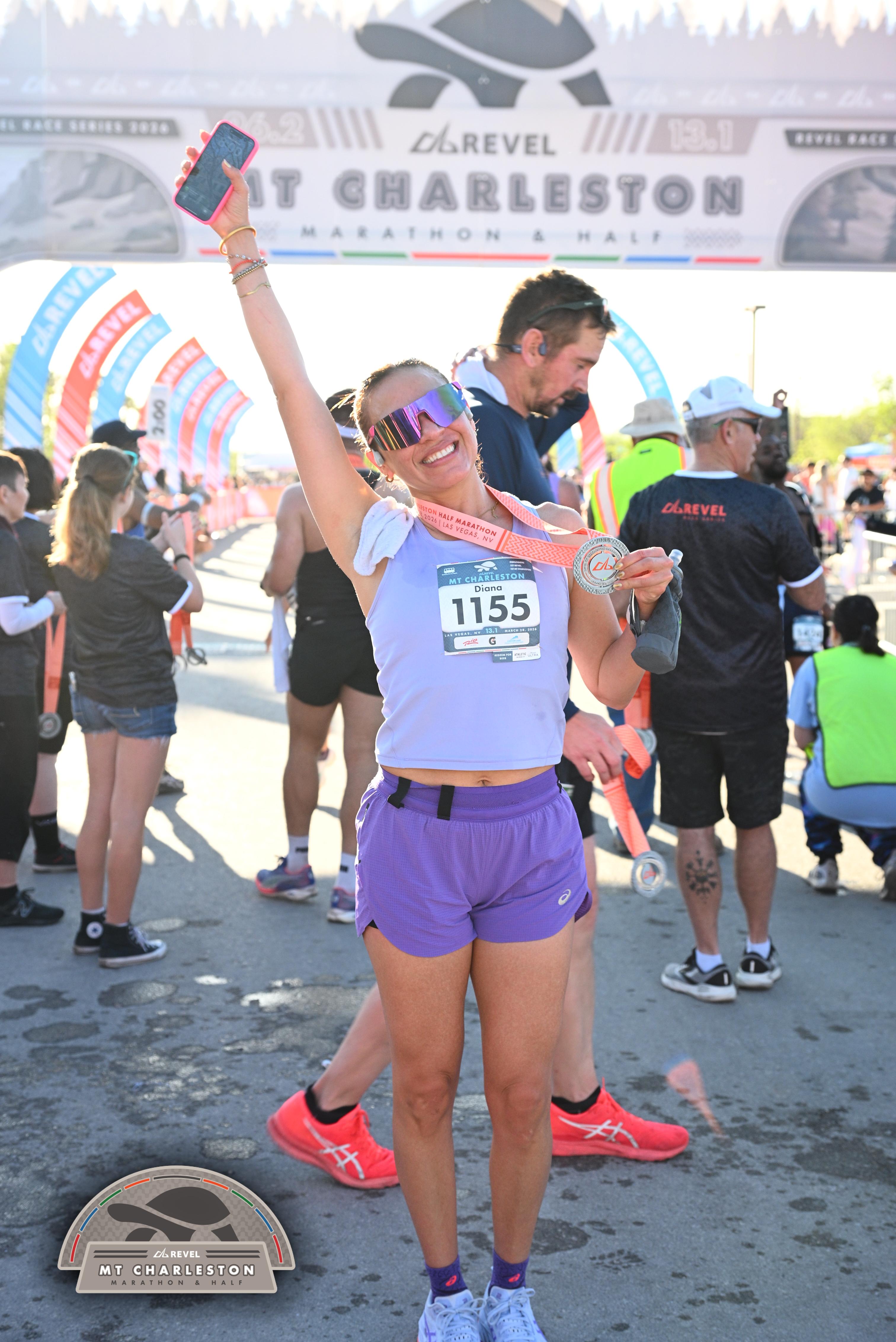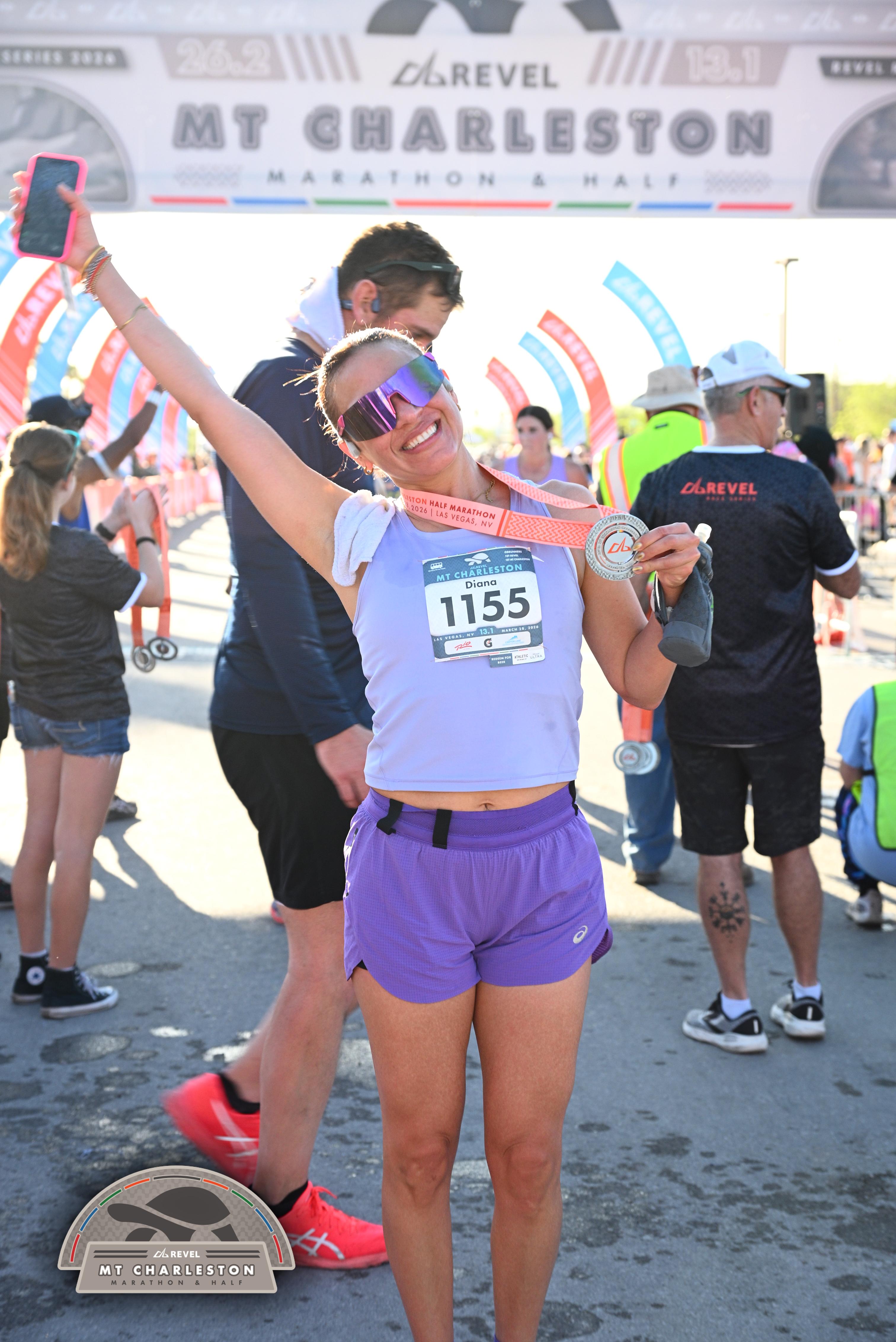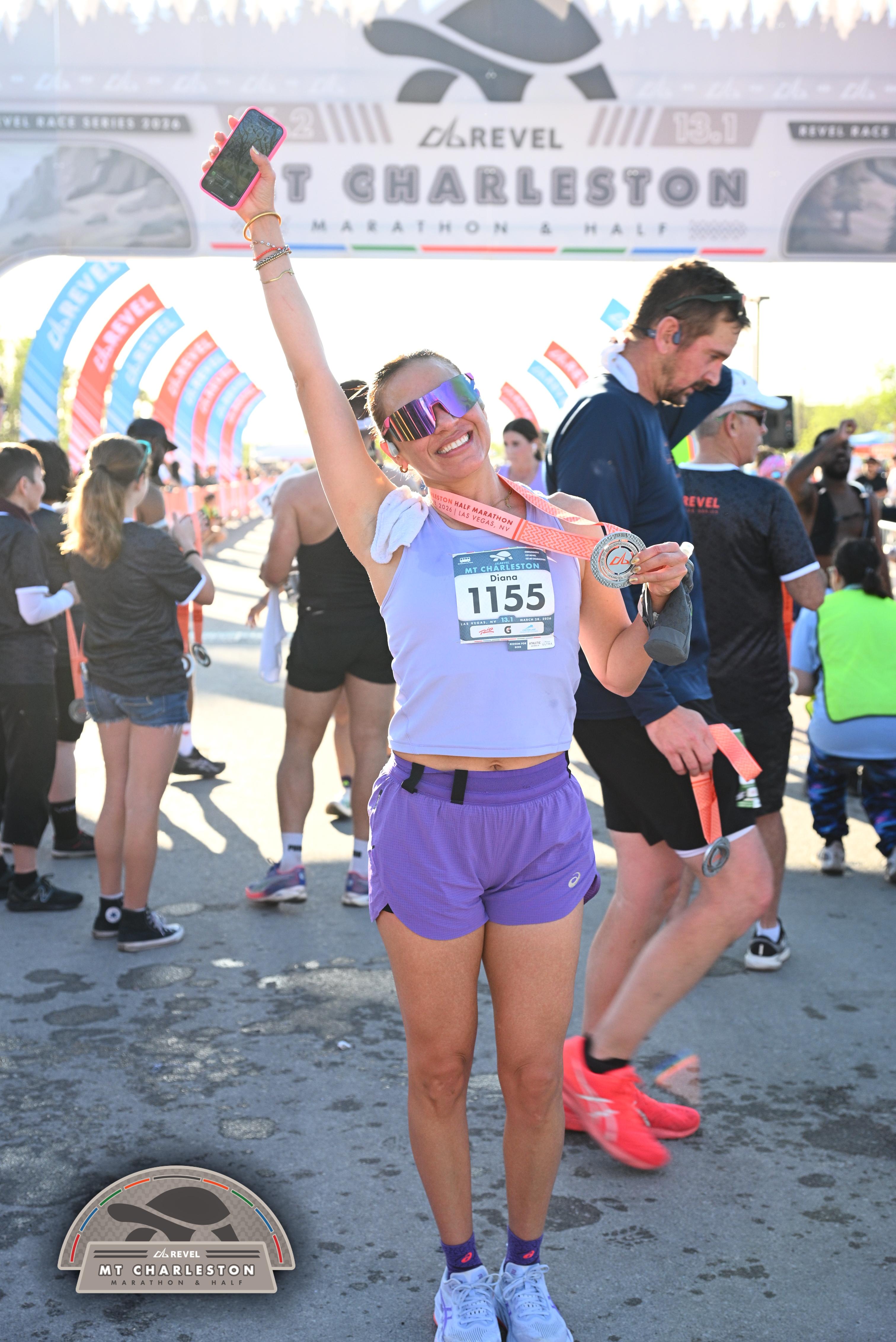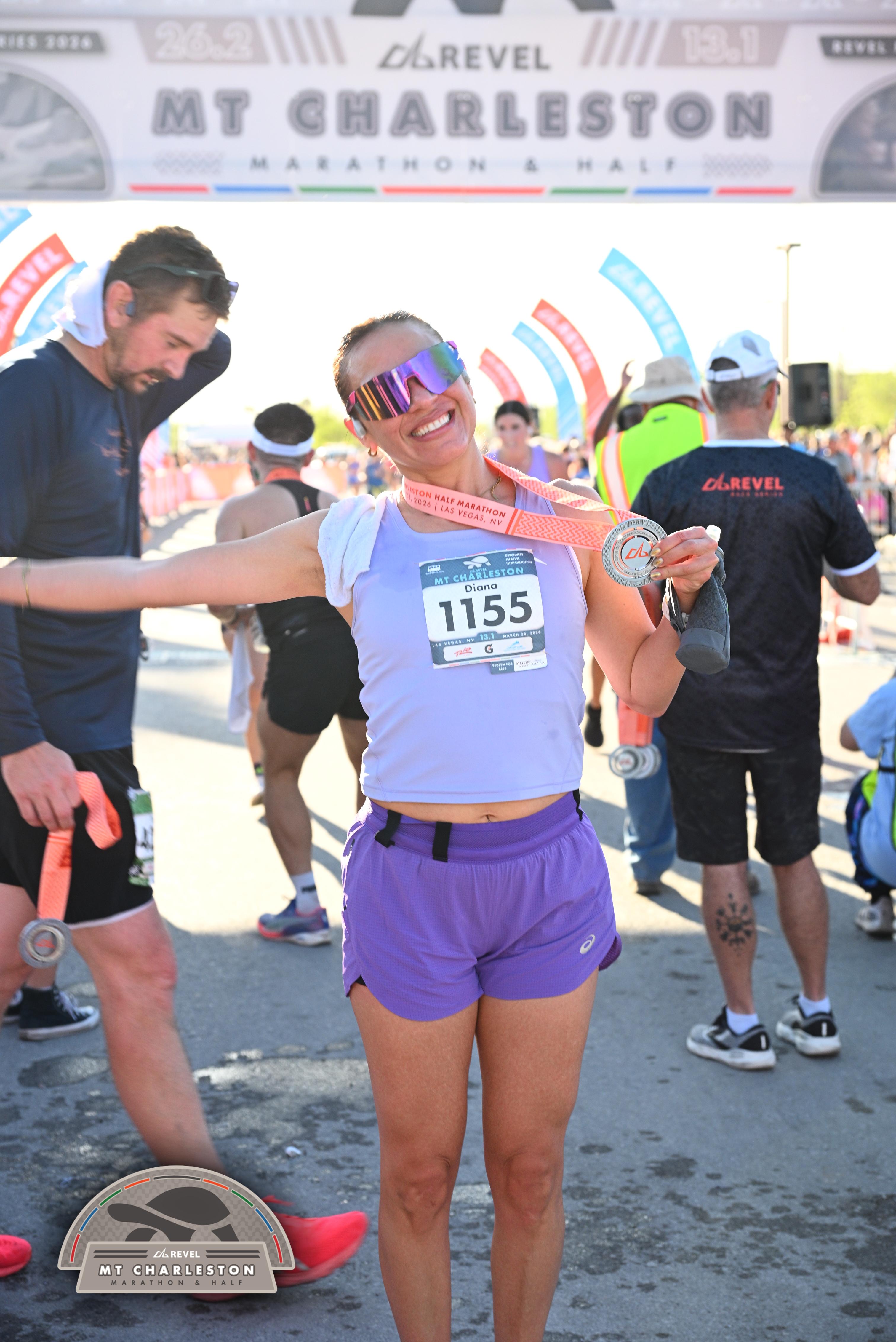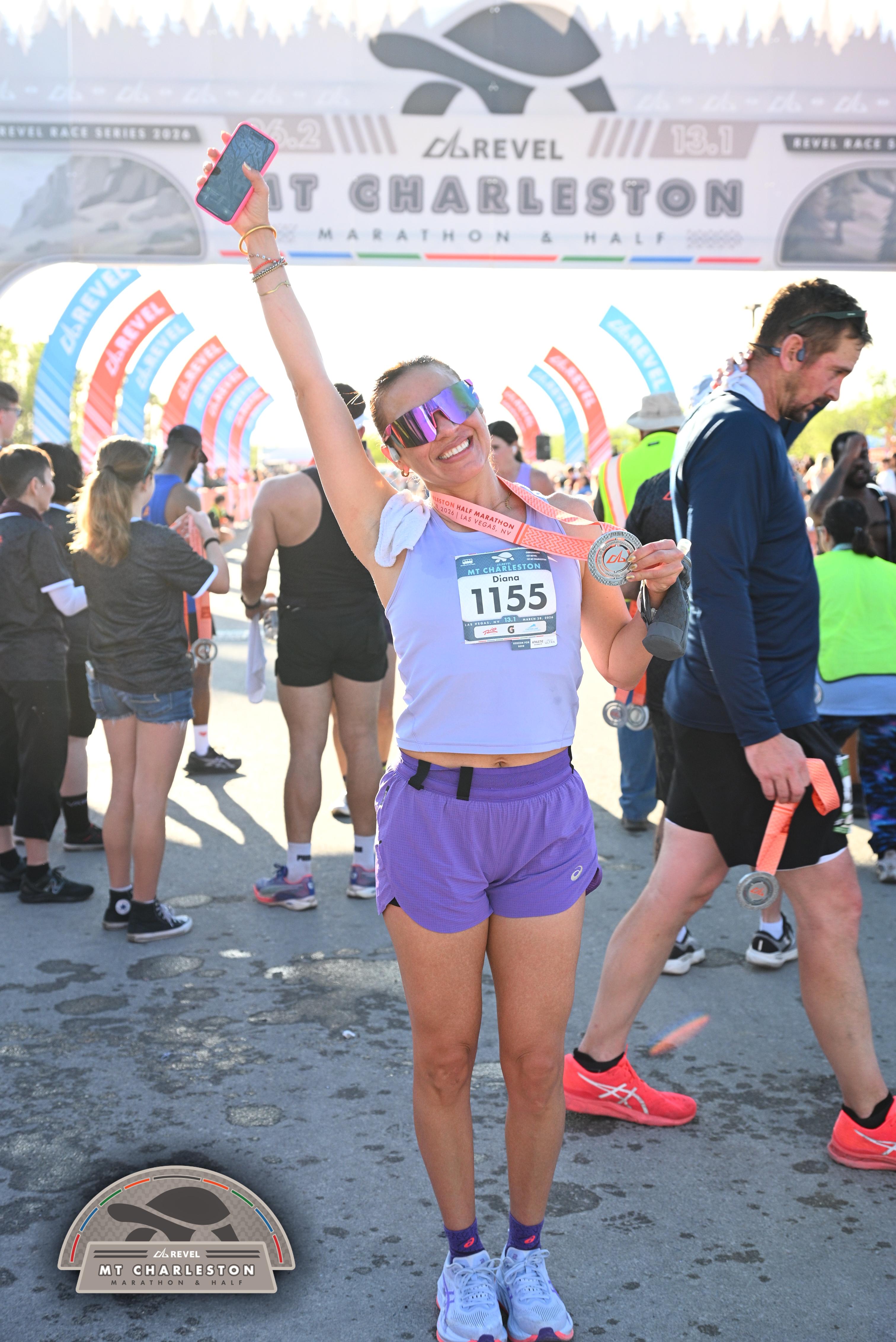 Date: March 28, 2026 Participant: Diana Avila #1155 Race: 2026 REVEL Mt Charleston Half Marathon Distance: 13.1 miles Weather: Unseasonably warm. Nice running temperatures at the start.