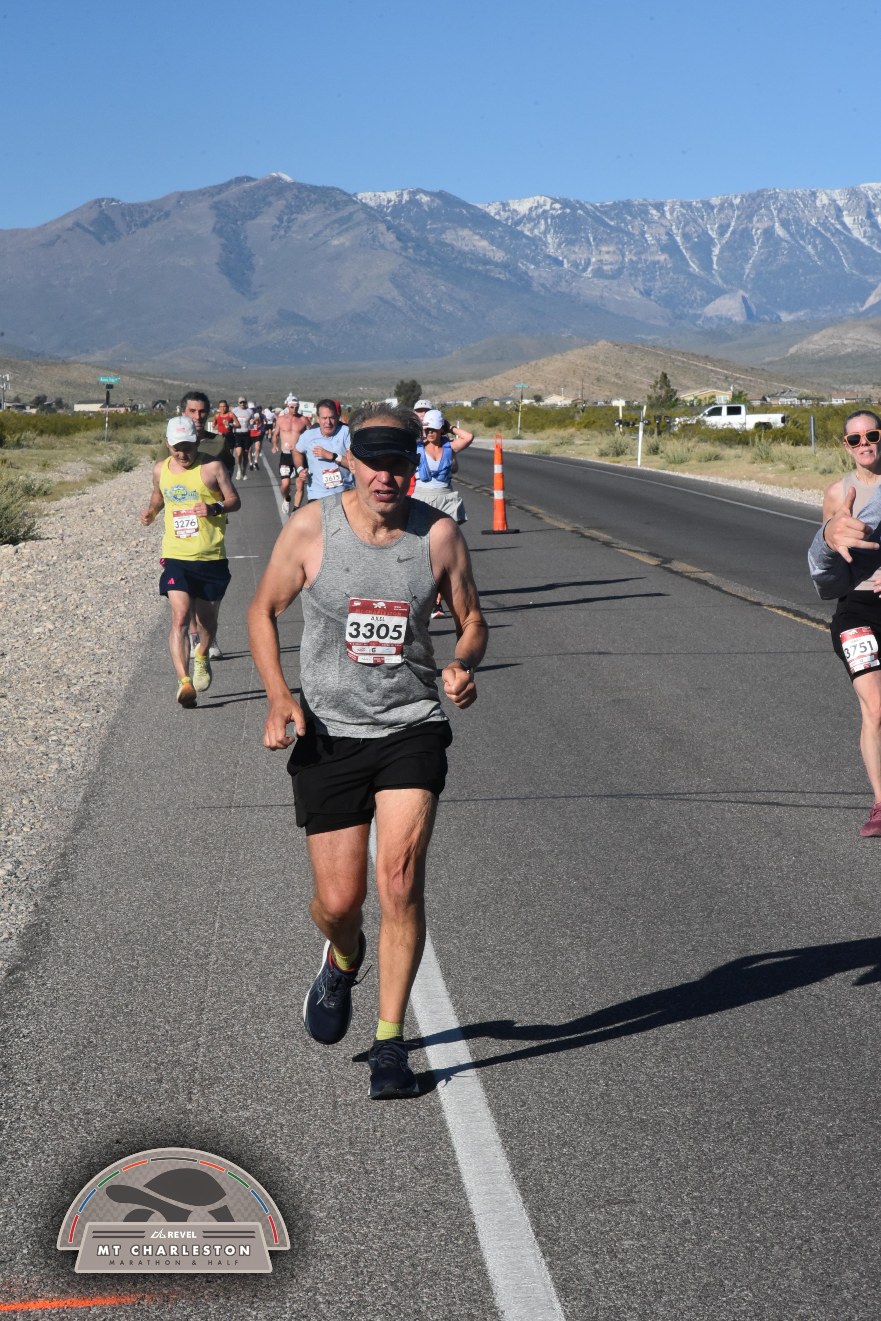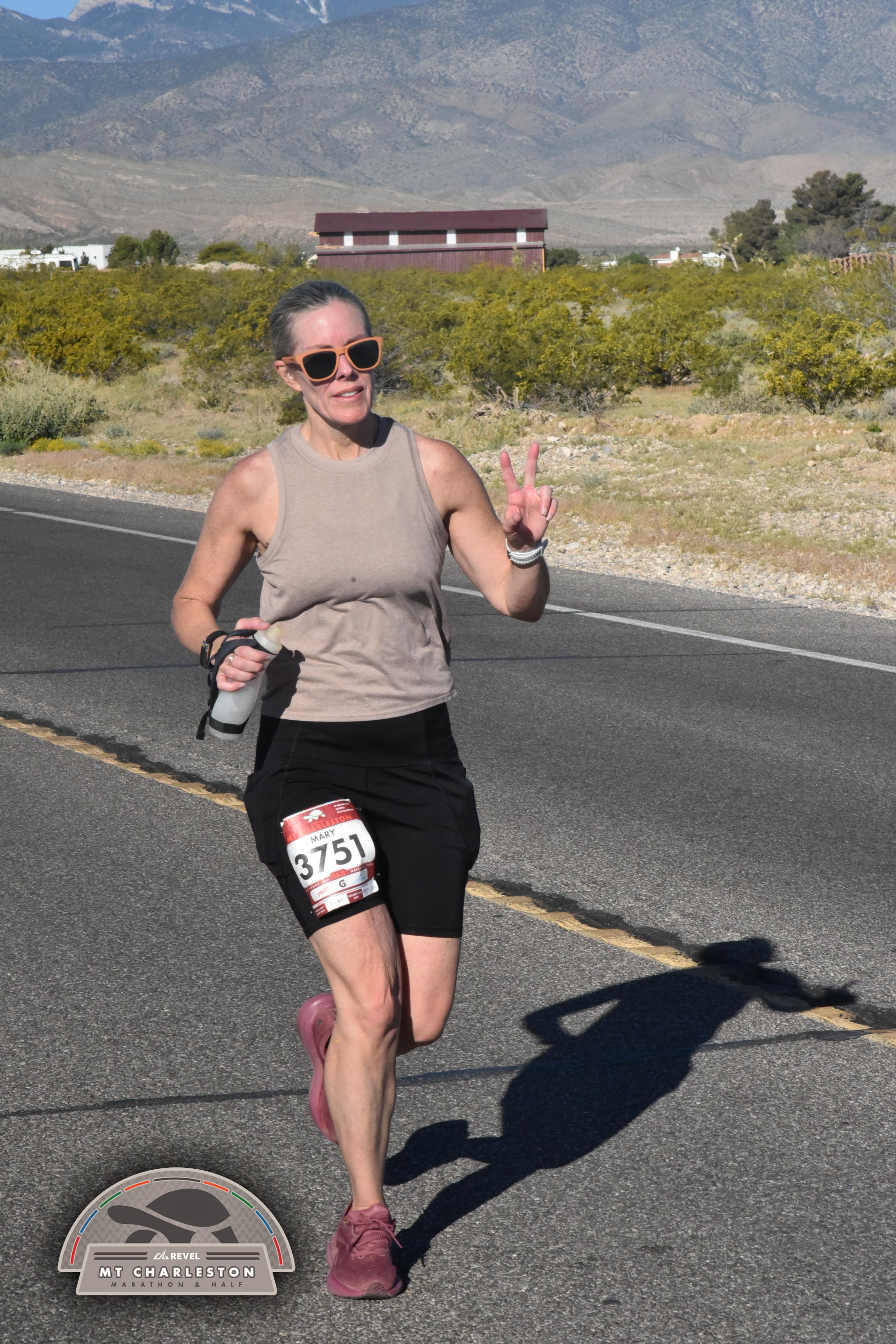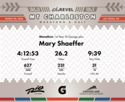 Date: March 28, 2026 Participant: Mary Shaeffer #3751 Race: 2026 REVEL Mt Charleston Marathon Distance: 26.2 miles Weather: Unseasonably warm. Nice running temperatures at the start.