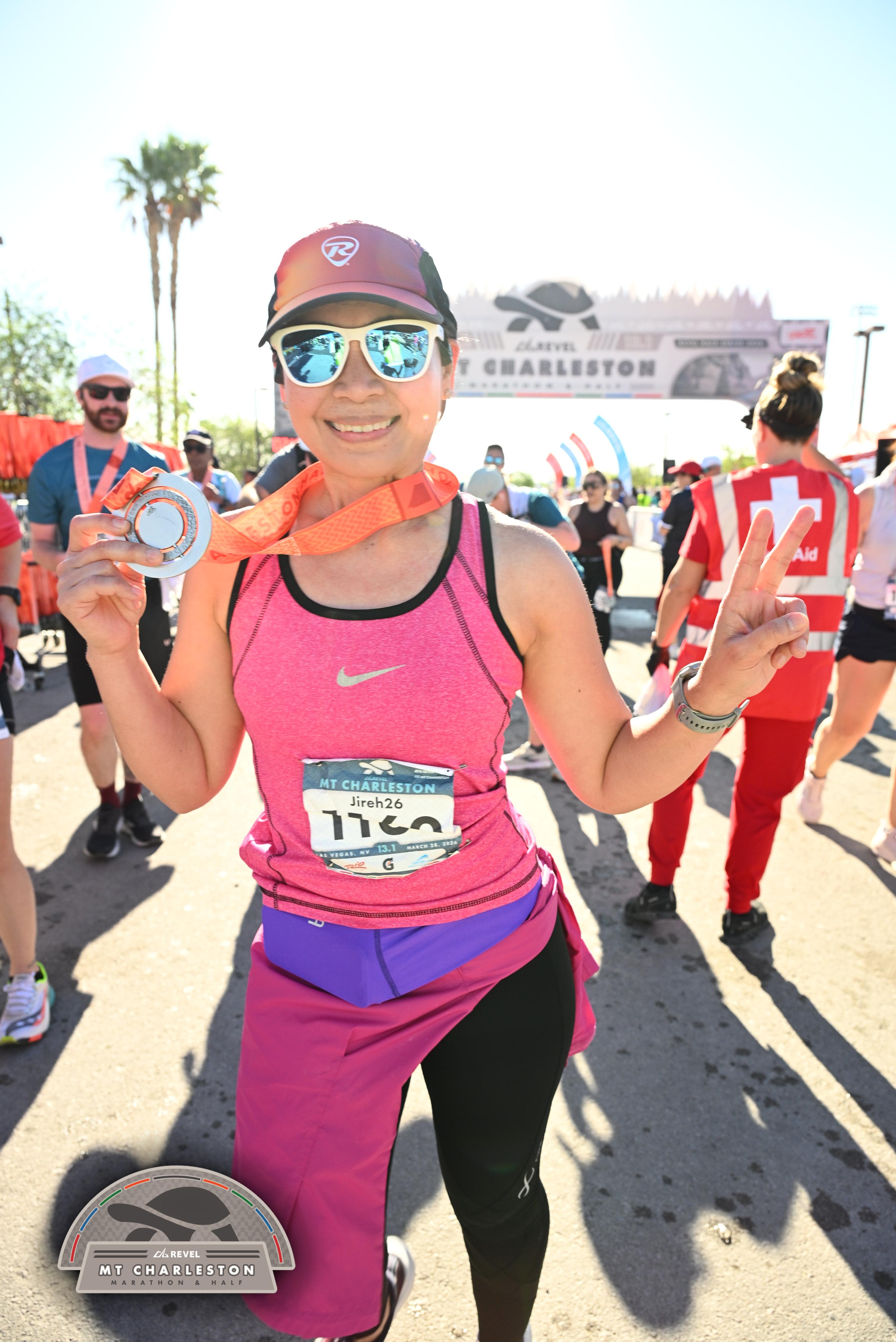 Date: March 28, 2026 Participant: Lucy Ann Bacalso #1160 Race: 2026 REVEL Mt Charleston Half Marathon Distance: 13.1 miles Weather: Unseasonably warm. Nice running temperatures at the start.