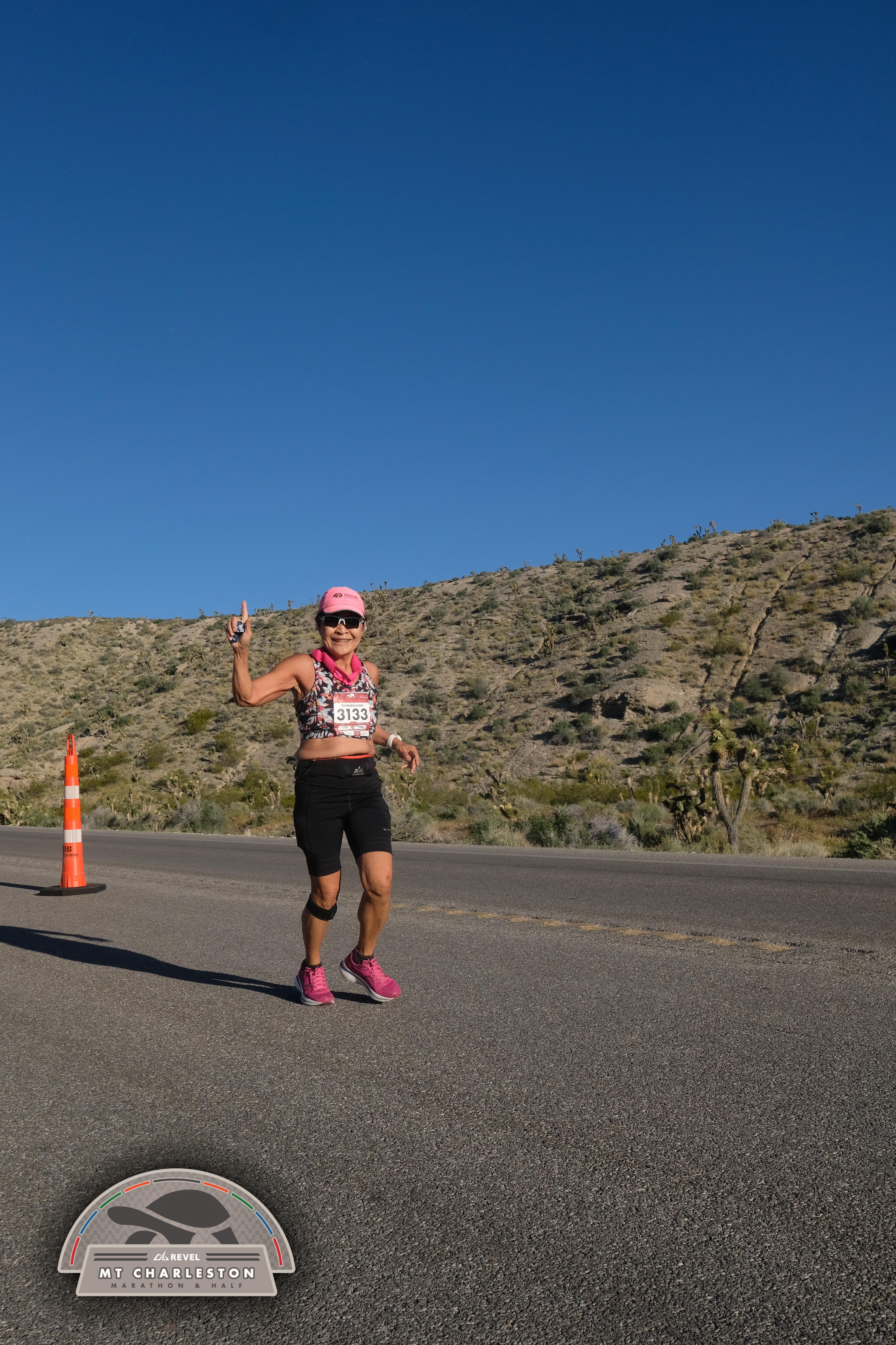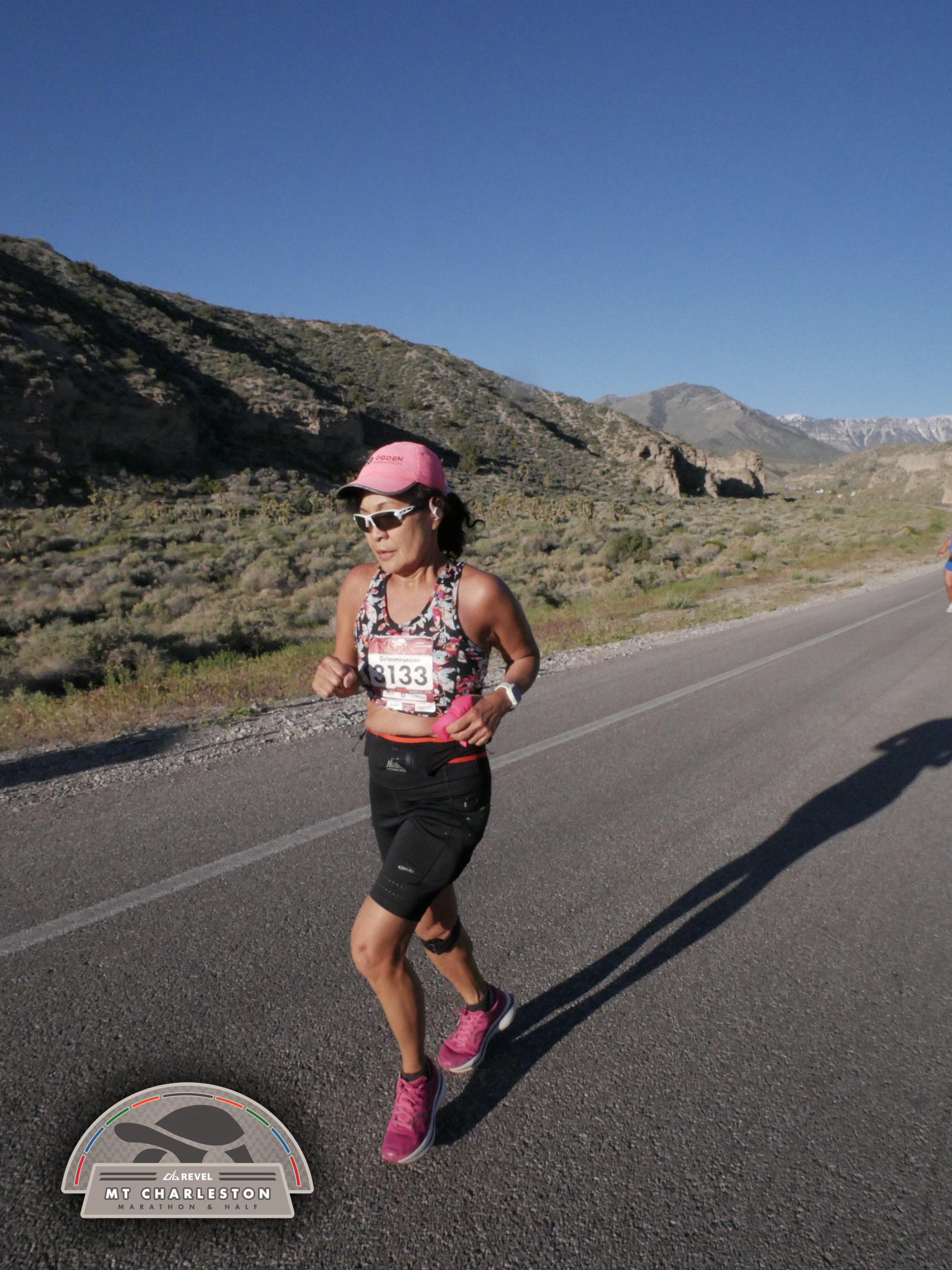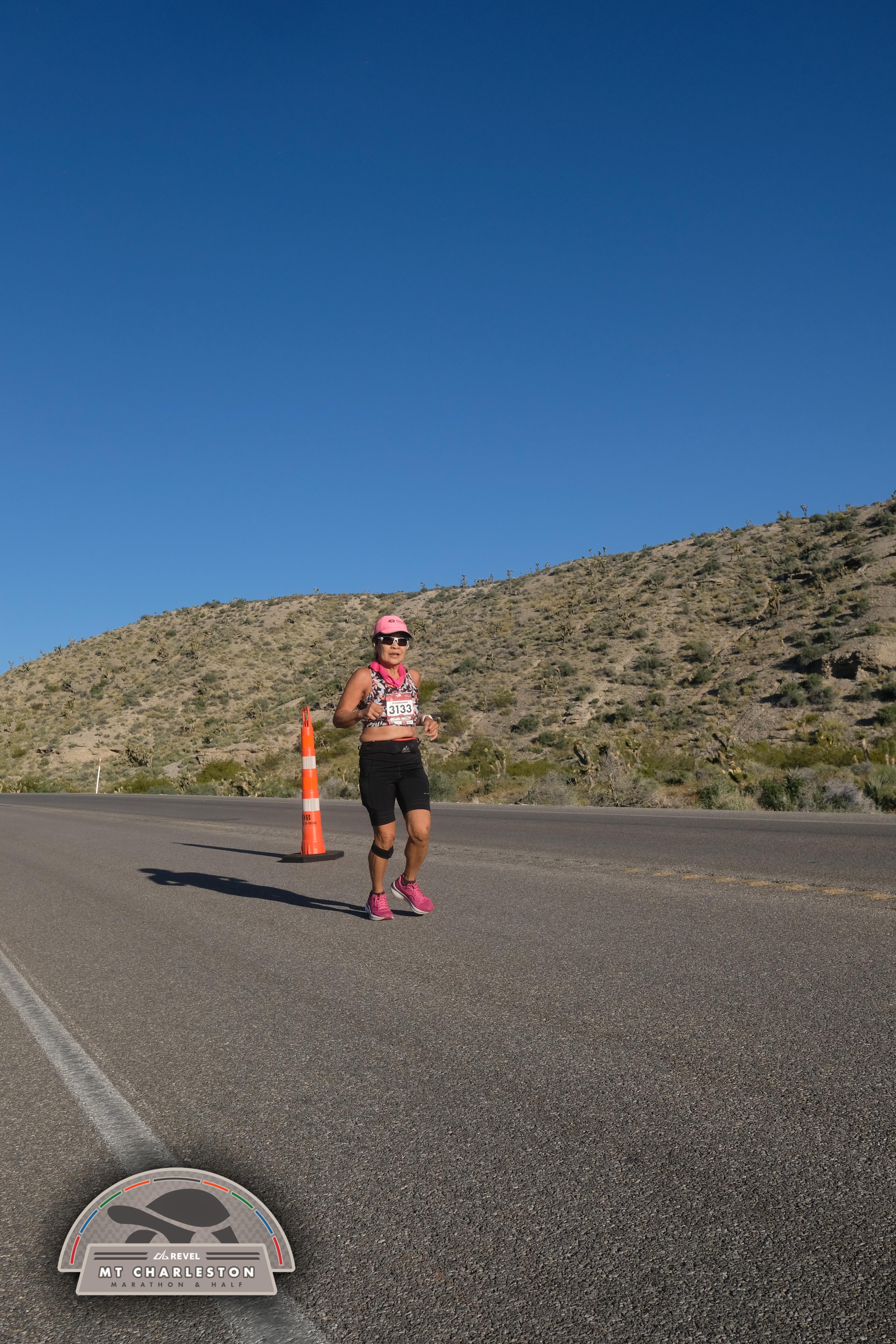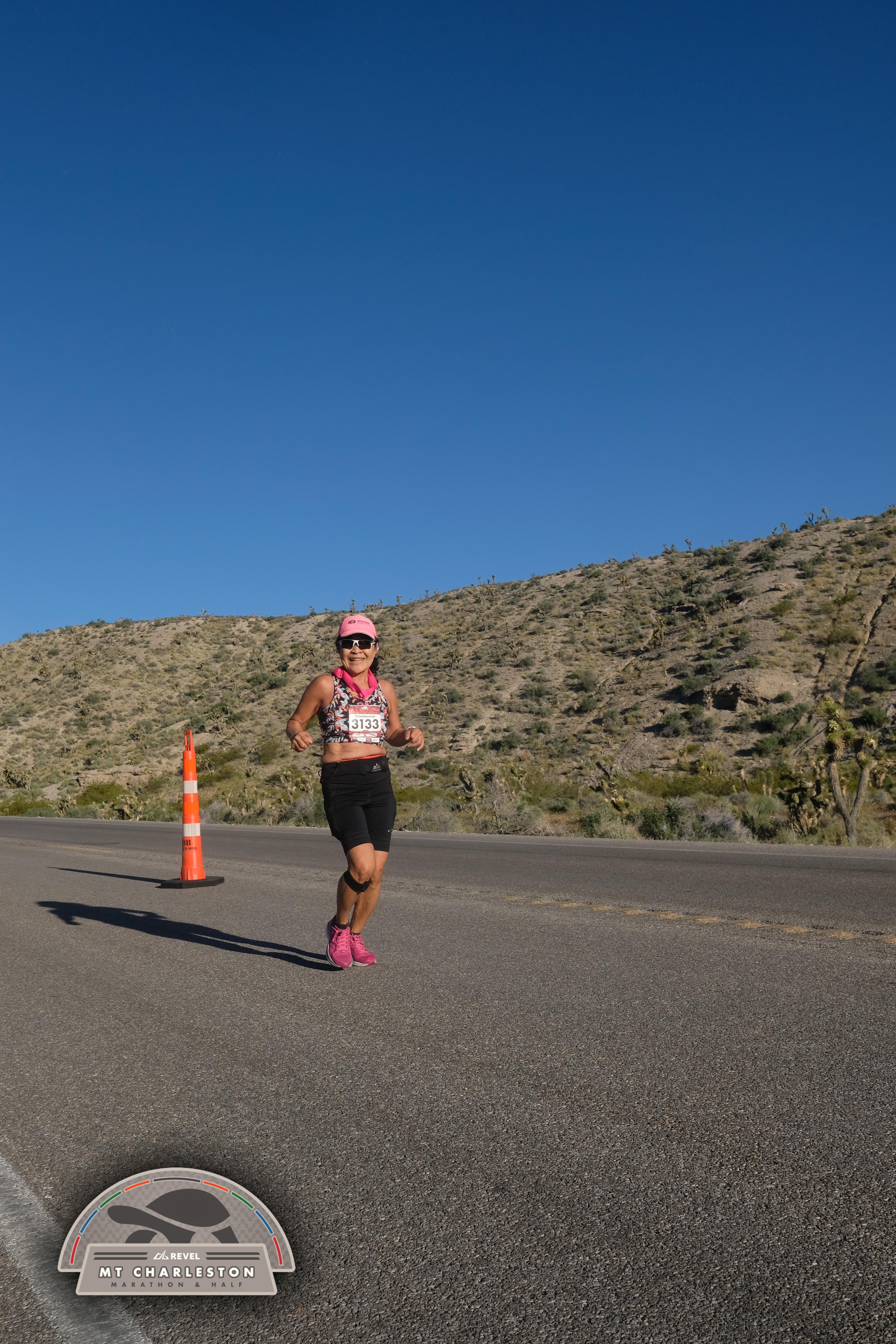 Date: March 28, 2026 Participant: Shirley Grimm #3133 Race: 2026 REVEL Mt Charleston Marathon Distance: 26.2 miles Weather: Unseasonably warm. Nice running temperatures at the start.