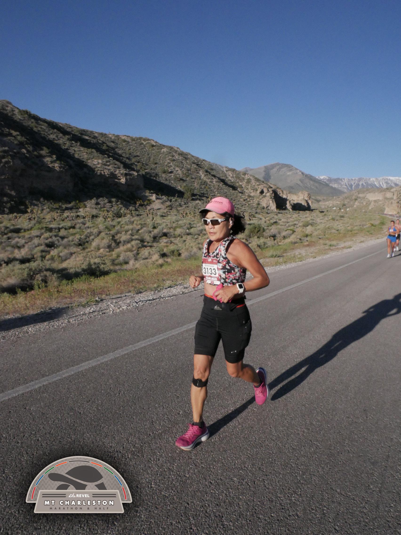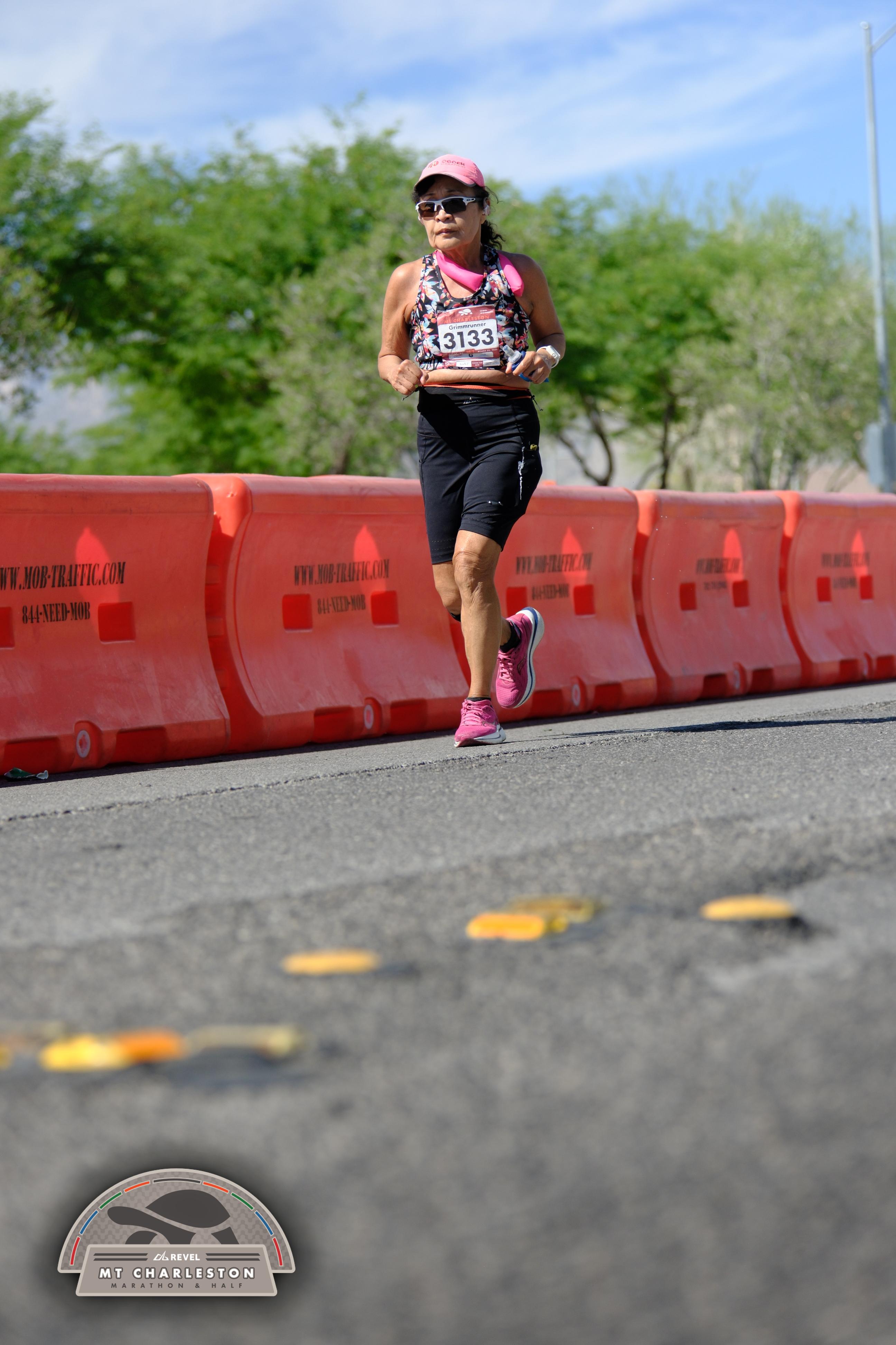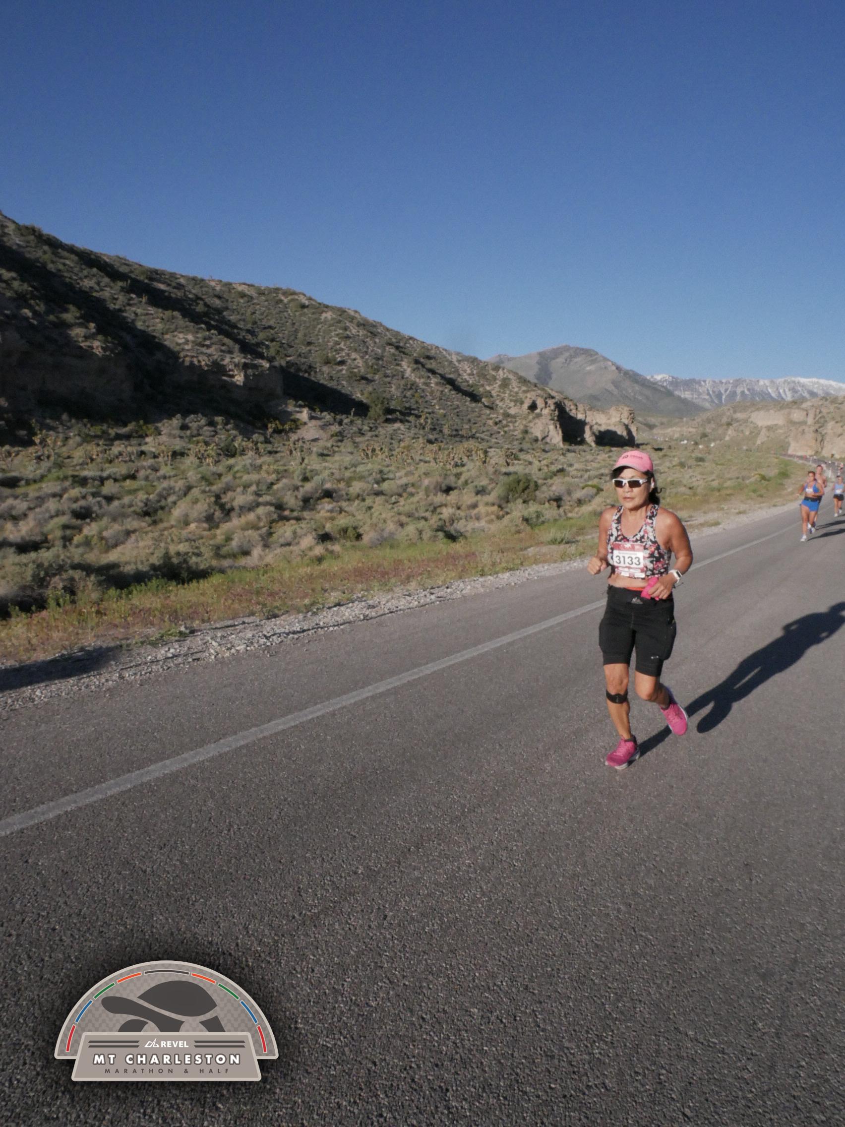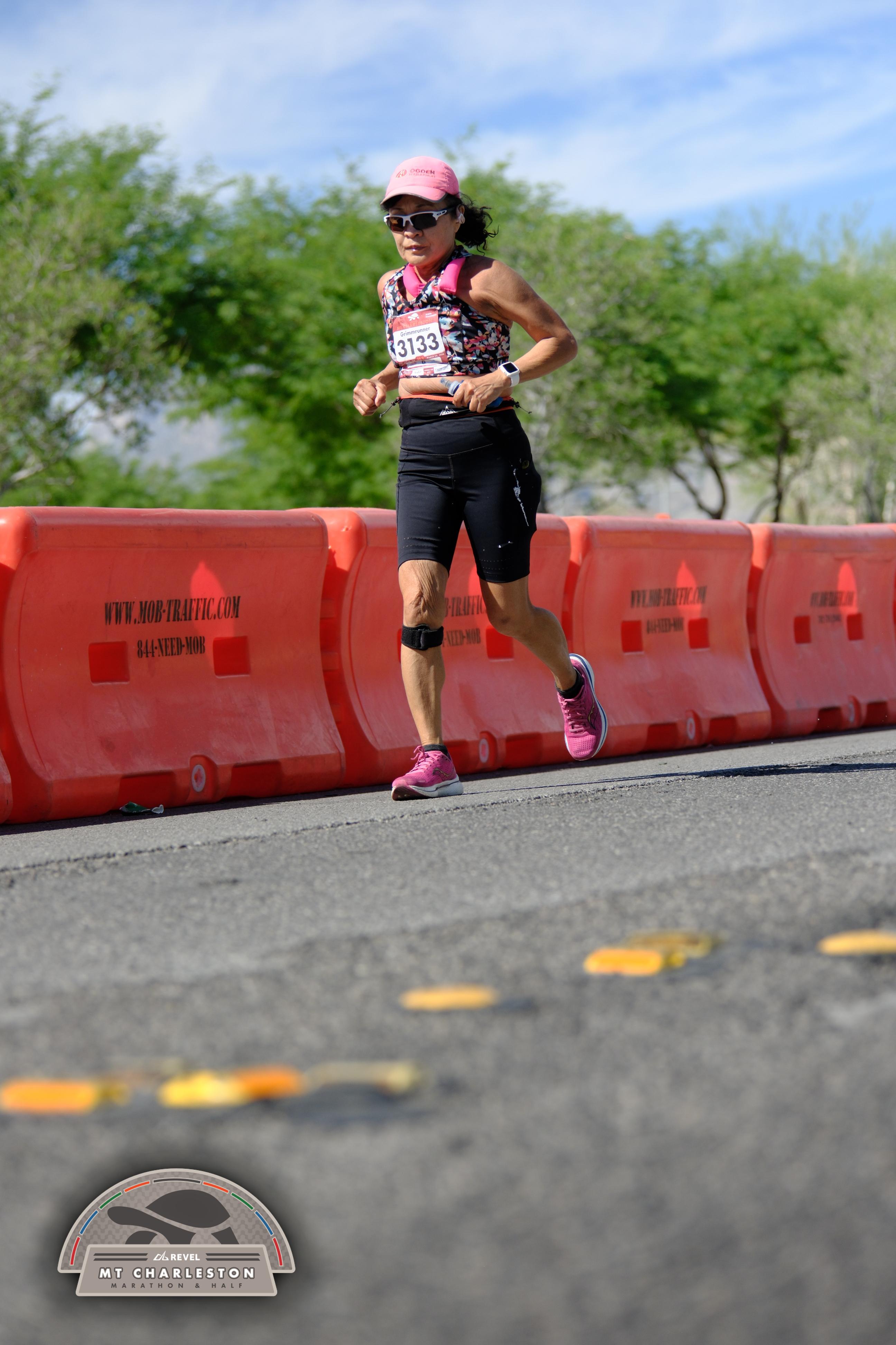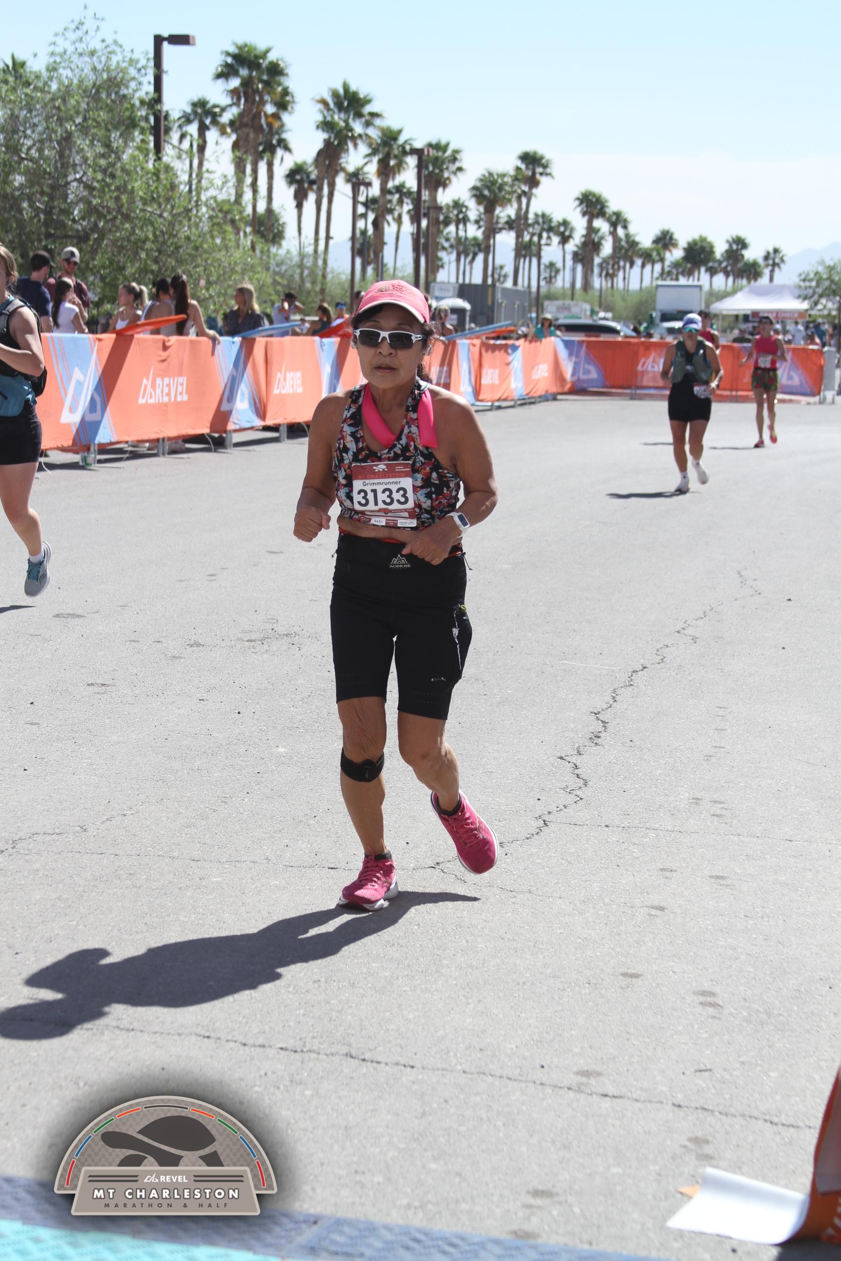 Date: March 28, 2026 Participant: Shirley Grimm #3133 Race: 2026 REVEL Mt Charleston Marathon Distance: 26.2 miles Weather: Unseasonably warm. Nice running temperatures at the start.